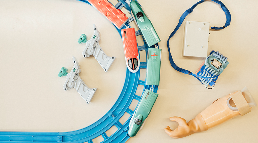 埼玉県所沢市にある「国立障害者リハビリテーションセンター」では、幼くして手を失ったり、先天性上肢形成不全によって生まれつき手や腕のない子どもたちに向けた「筋電義手」の訓練が行われています。実はその訓練で長年取り入れられているのがプラレールを使ったアソビ。本企画では国立障害者リハビリテーションセンターの義肢装具士である中村隆さんと作業療法士の木村麻美さんに、数あるおもちゃからプラレールが選ばれた背景や理由、上肢障害をもつ子どもたちのウェルビーイングにアソビがもたらす可能性について語っていただきました。