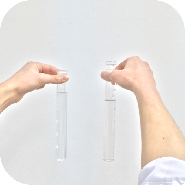 赤ちゃんがおもちゃをくわえたとき、色素が溶け出さないか、おもちゃを一定時間お湯に浸して確認します。