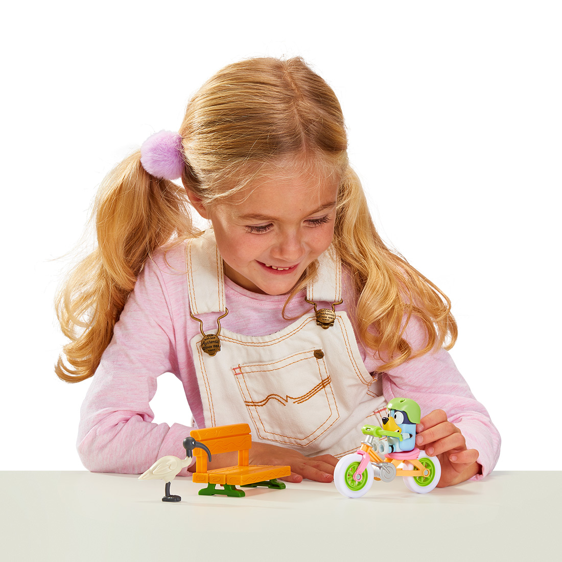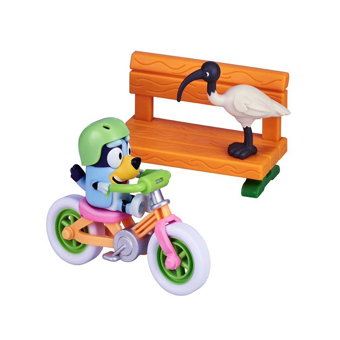 ブルーイとビンゴのフィギュアと小物パーツのセットです。ブルーイとビンゴのフィギュア、カメラとボブ・ビルビーの小物パーツがついています。