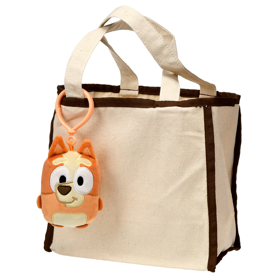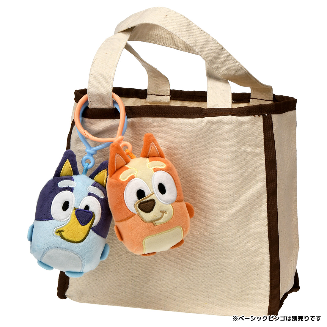 バッグなどにつけられる、フックが付いたキャラクターマスコットです。いつもブルーイといっしょ!
