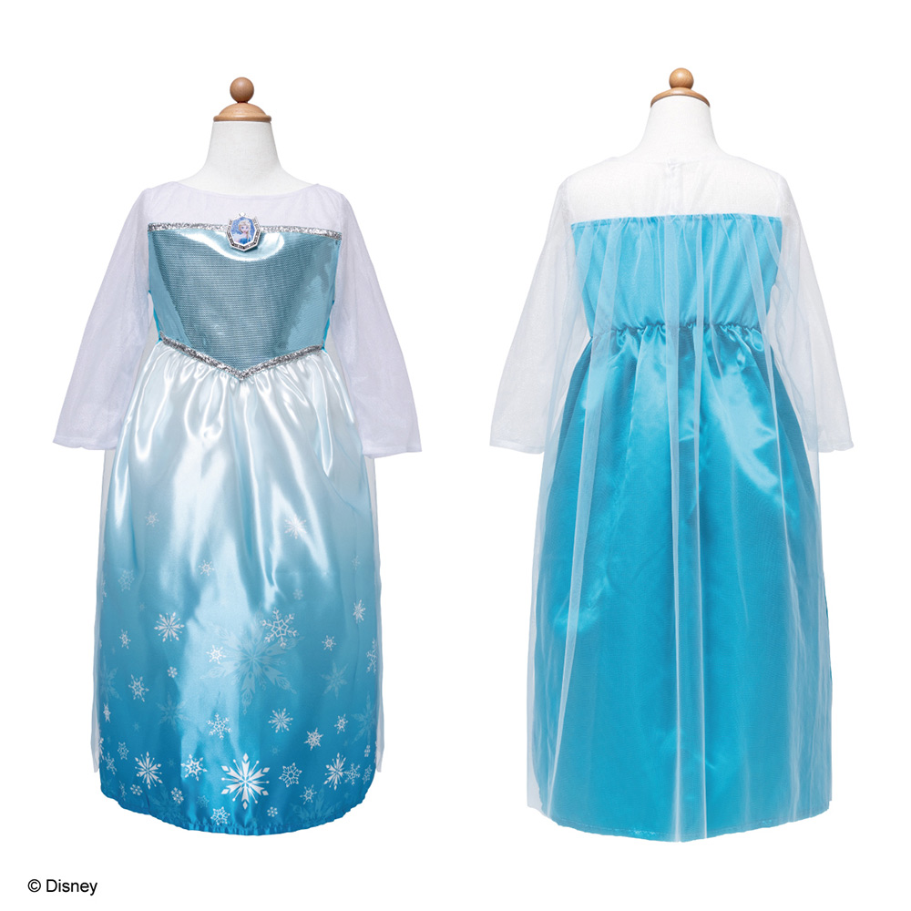 憧れのエルサになれちゃうファンタジーな公式ドレスです。キラキラなブローチで気分はプリンセス!
