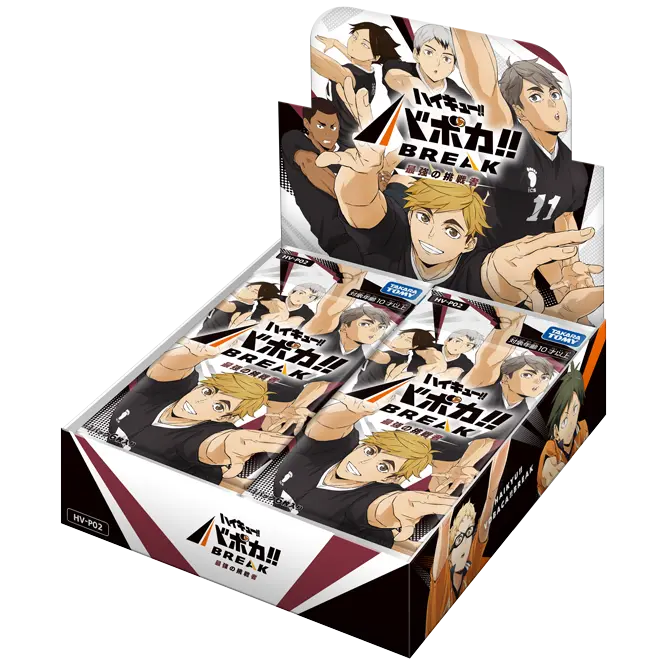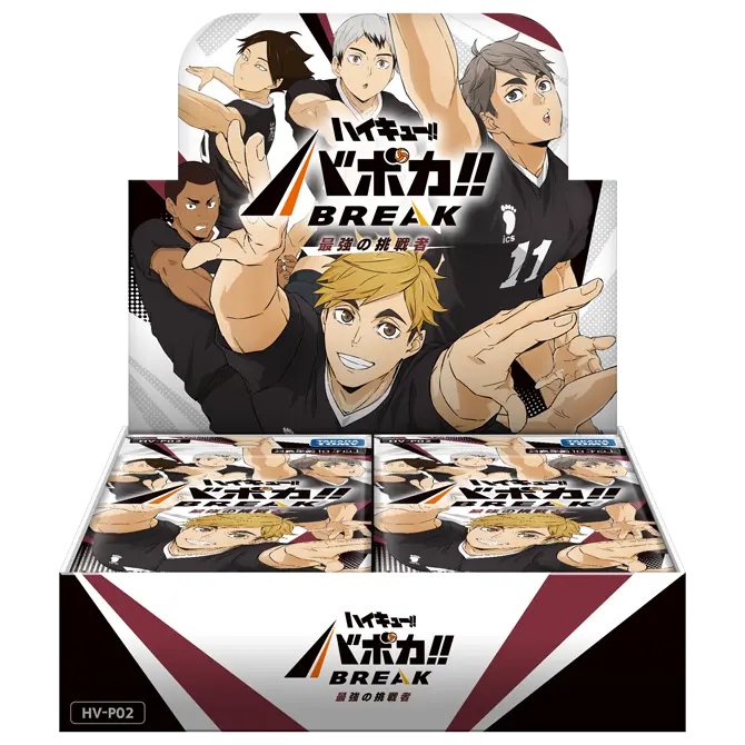 100種類以上のカードの中からランダムに6枚入ったカードパックです。1パックに1枚必ずキラカードが入っています。第2弾は、稲荷崎高校を中心に烏野高校、伊達工業高校、白鳥沢学園高校、他高校多数のキャラクターを収録しています。