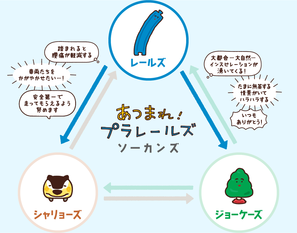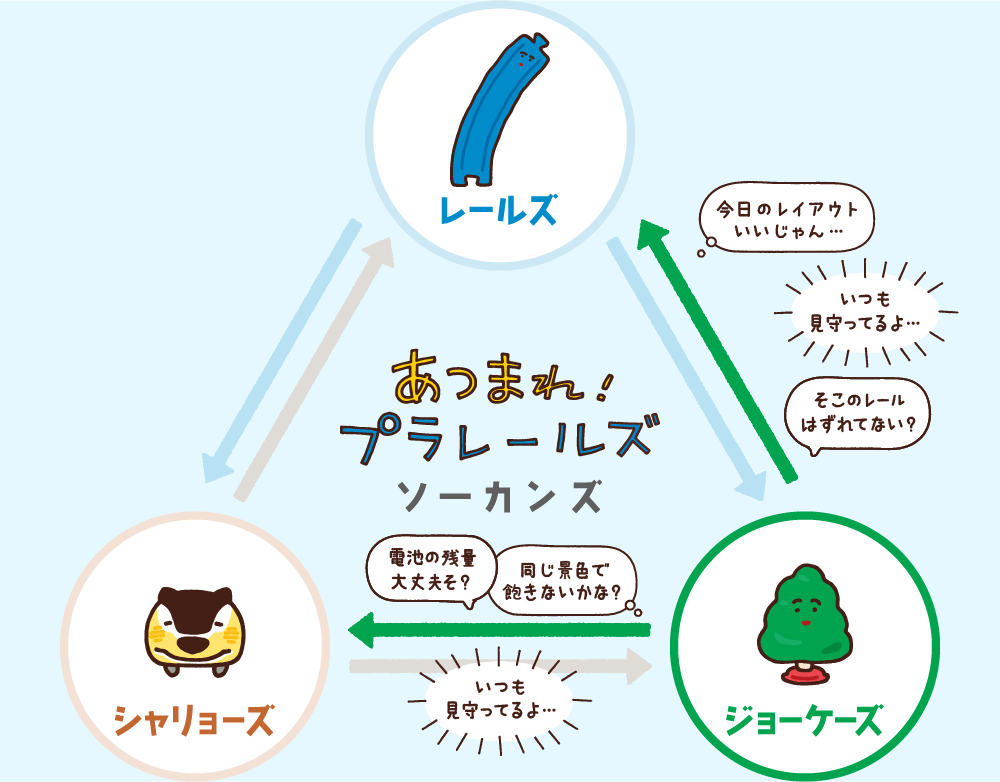 おうちの人や身近な人といっしょに、みんなで「プラレールズ」の日常を楽しんでもらえたら嬉しいです。