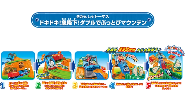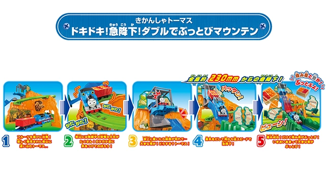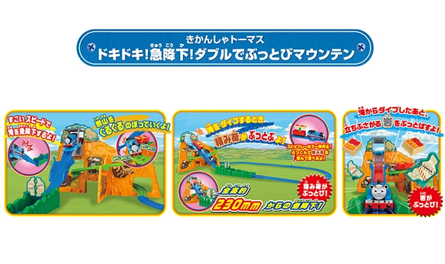 スリル満点!!全高約230mmの岩山からジェットコースターみたいにプラレールトーマスがビューン!!と急降下!!