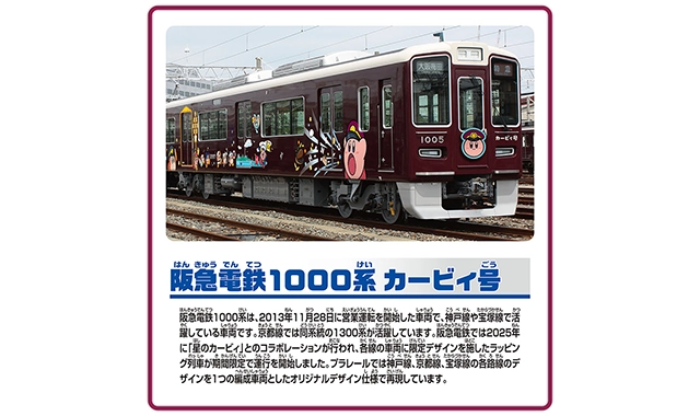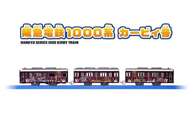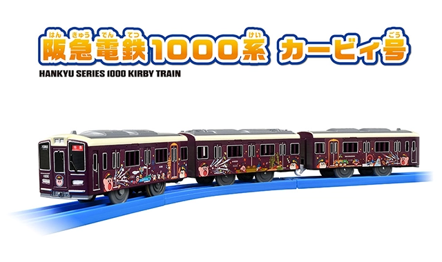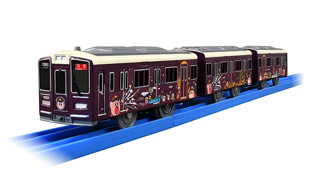 「星のカービィ」がラッピングされた阪急電鉄1000系がプラレールに登場! 阪急電鉄では2025年に各線の車両に限定デザインを施したラッピング列車が期間限定で運行を開始しました。
