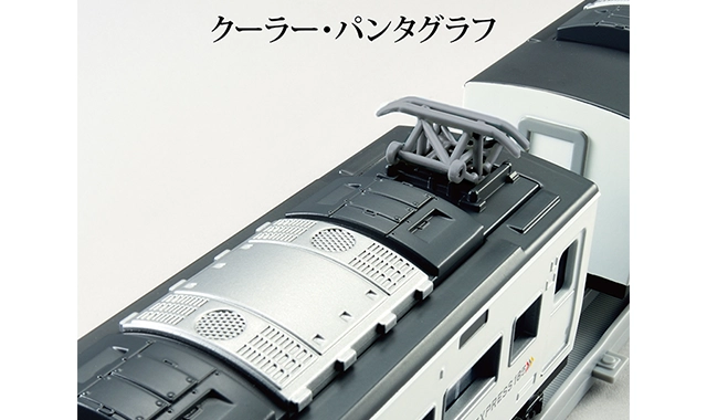 ■国鉄特急シンボルマーク、タイフォンカバー、クーラー、パンタグラフ、車体内部シートなどリアルな造形・塗装などで表現