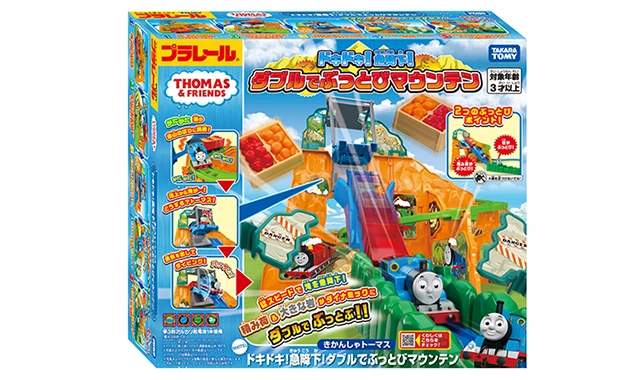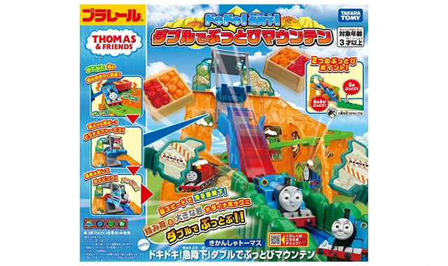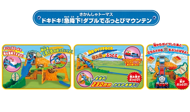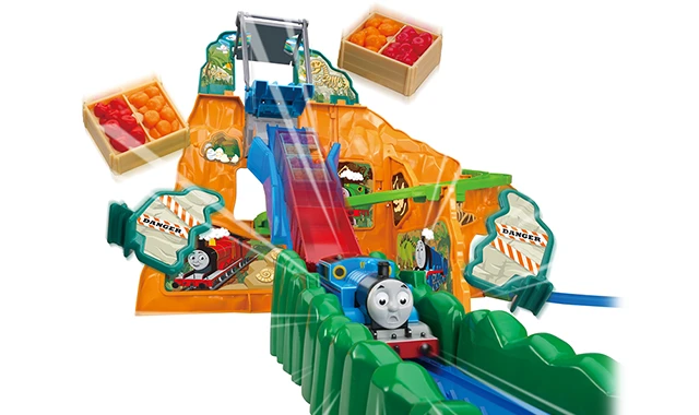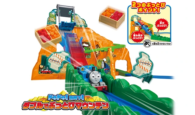スリル満点!!全高約230mmの岩山からジェットコースターみたいにプラレールトーマスがビューン!!と急降下!!