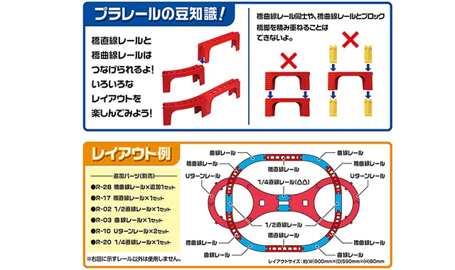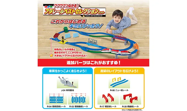 オリジナル新車両や新パーツも入って、10種類以上のレイアウトが作れる大ボリュームなセットです。
