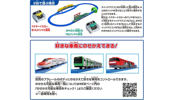 ■クイックマスコンシリーズの車両が2台あればAとBのバンド切り替えで別々に走行させることが可能