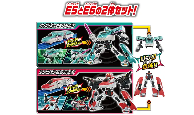 「シンカリオン E5+E6」「シンカリオン E6+E5」の2パターンのリンク合体が楽しめる!