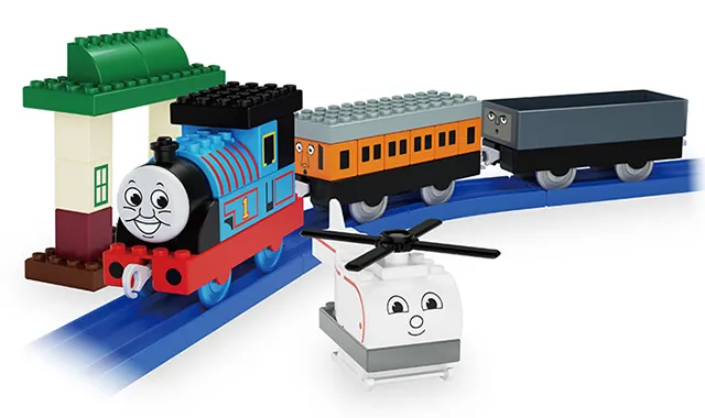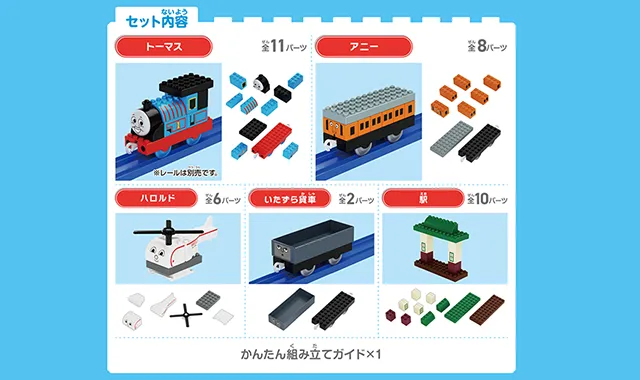 全37パーツのブロックを使って、『きかんしゃトーマス』のなかまたちををキミの手で組み立てよう!