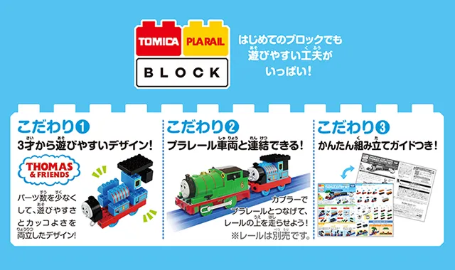 初めてでも簡単で、トミカやプラレールといっしょに遊べる楽しいブロックが登場!