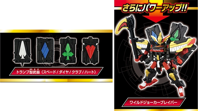 「ギガントジョーカーブレイバー」がトランプ型武器(スペード/ダイヤ/クラブ/ハート)を身に着けることでさらにパワーアップ!! 「ワイルドジョーカーブレイバー」になるぞ!!