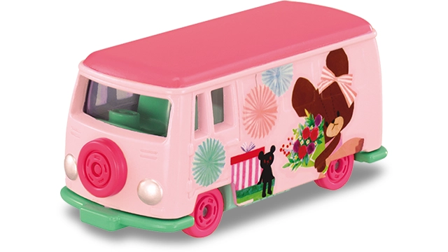 ピンクの車体カラーで作品のかわいい世界観を表現しています。