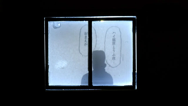 ・1F店舗内の電灯が点灯し、文太のシルエットが浮かび上がります。