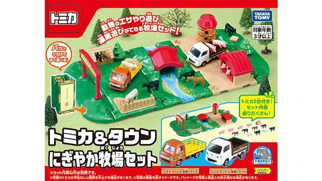 トミカ2台、新情景のトミカタウン牧場、ウシ、ウマ、ブタの動物フィギュアが計12体、エサ付属、セット内容盛り沢山で買ってすぐに遊べます!