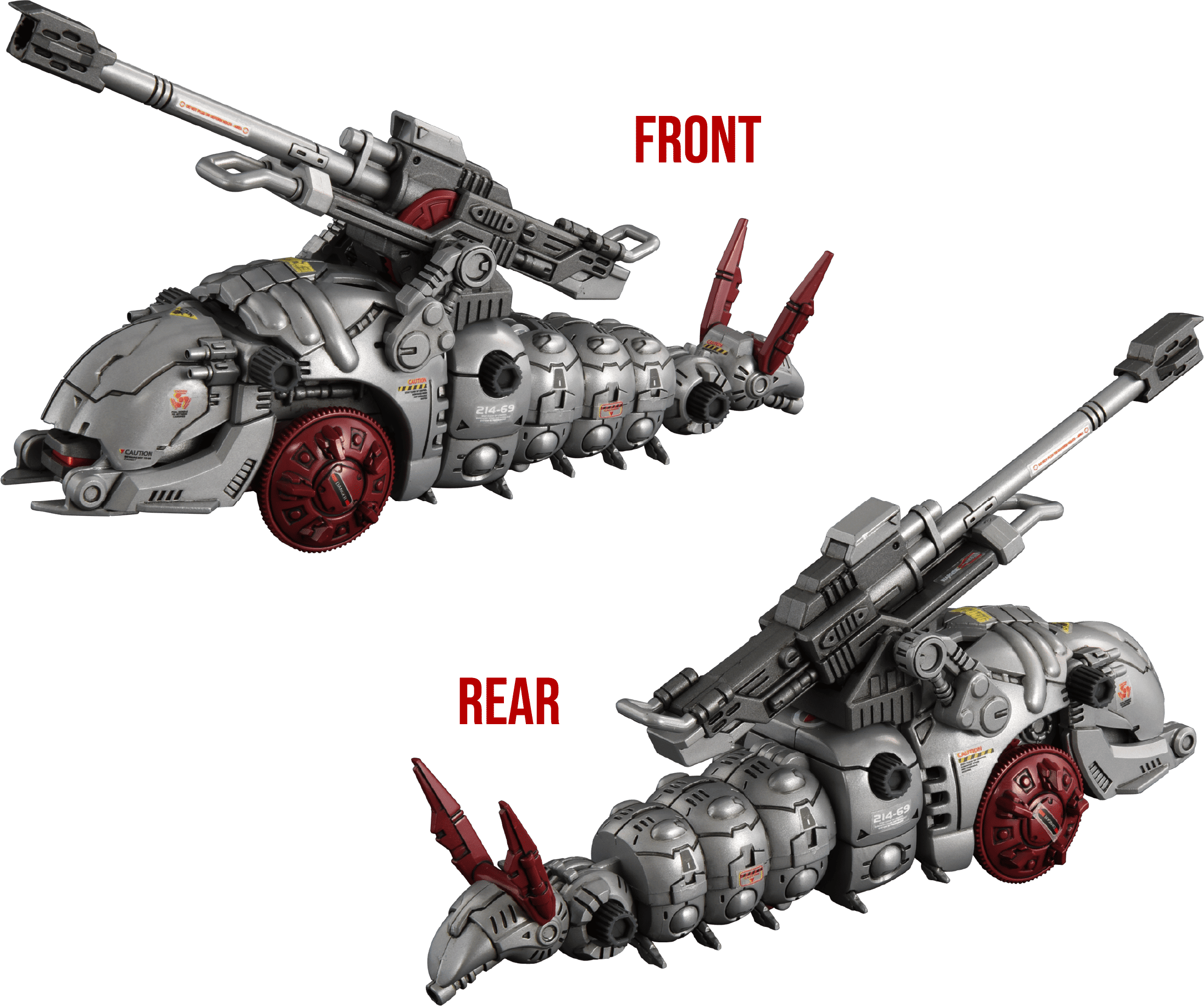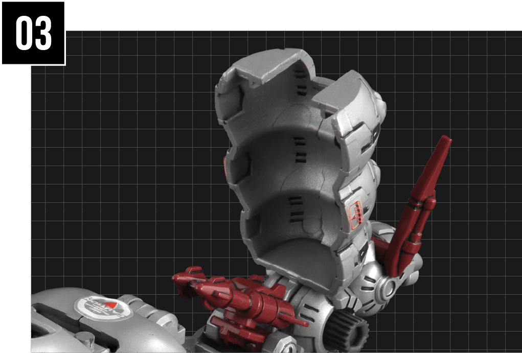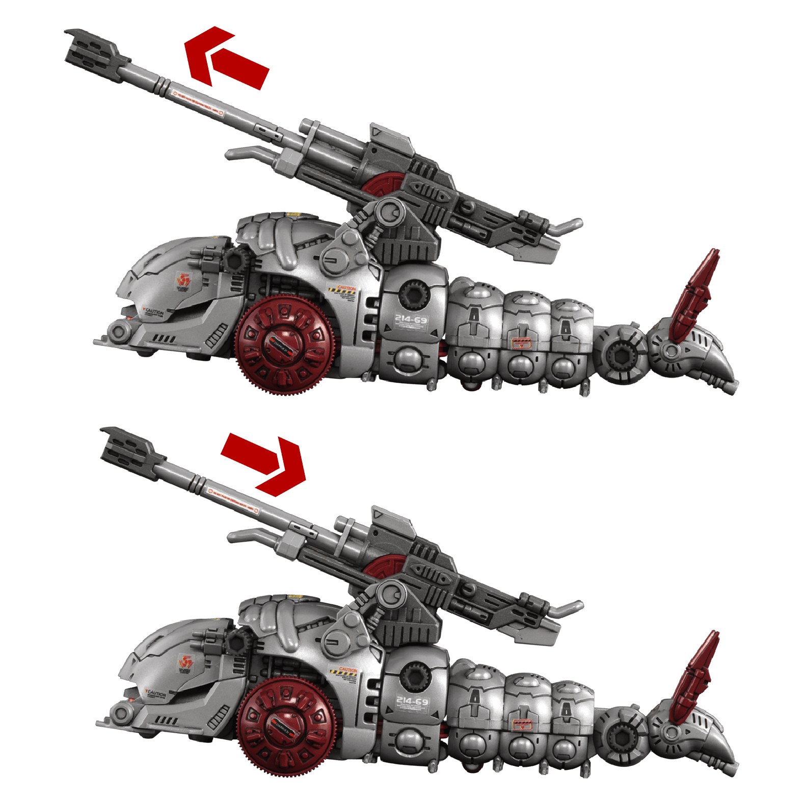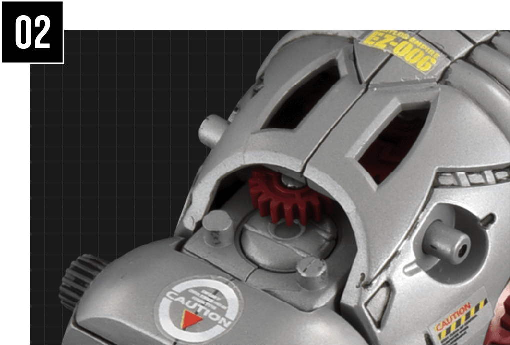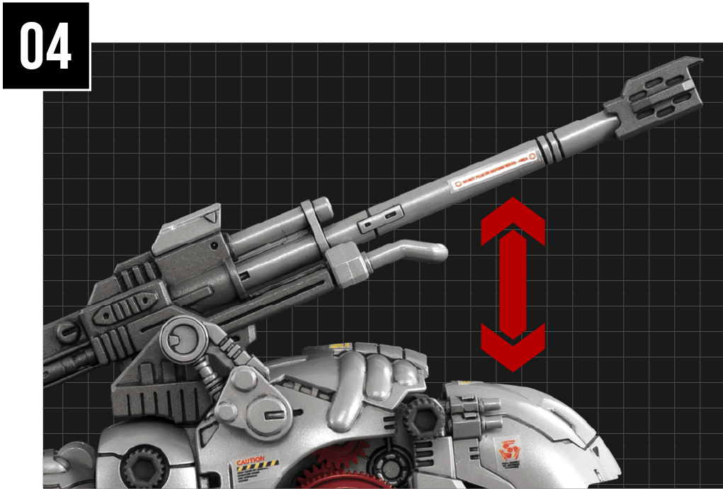 AZ120mmグライドキャノンをはじめ、頭部アーマーやコックピットハッチ、尾部アーマーなどの各部アーマーパーツが可動。多数の可動パーツを搭載することで、メカニカルな見せ場を作り出す。