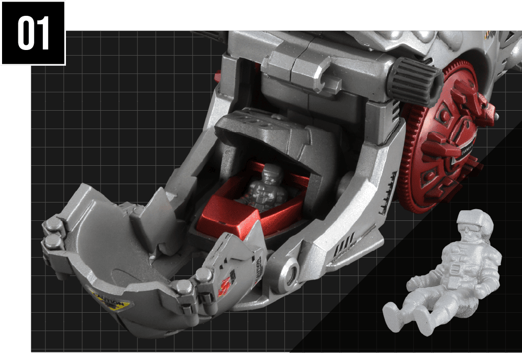 頭部アーマーとコックピットハッチが開閉。付属する1/72スケールの一般兵士パイロットフィギュアが搭乗可能。