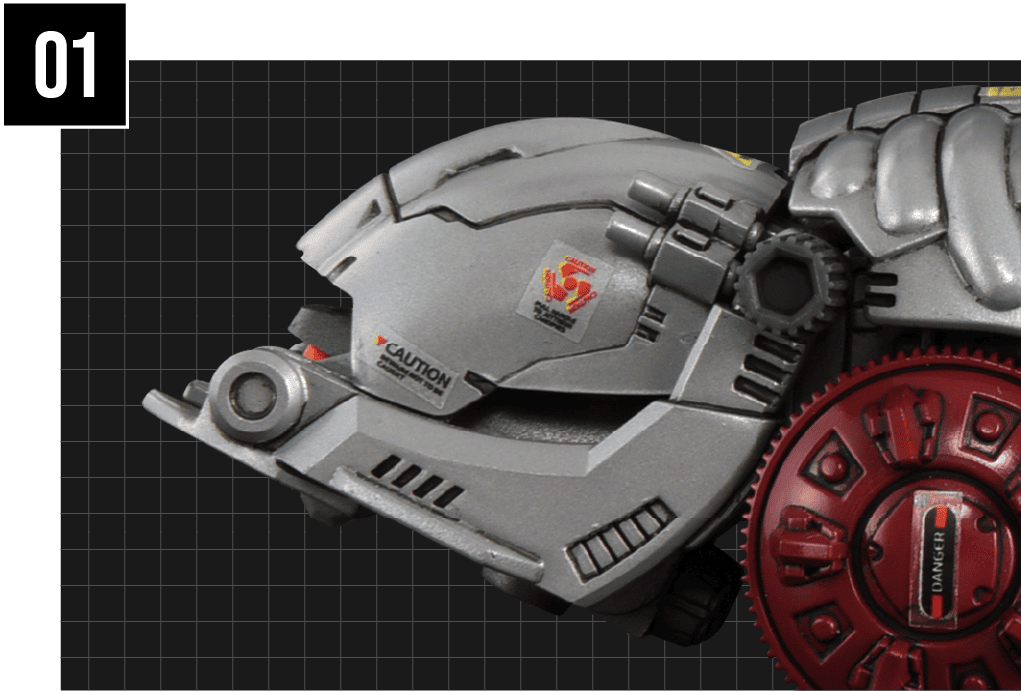 サイズ・形状ともに様々なアレンジの方向性を検討し、最終的に原点の「CP-07 キャノリーユニット」のデザインをベースに、電動ギミックとのバランスをとったデザインを採用した。