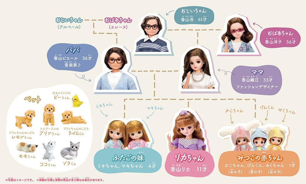 1967年に誕生した着せ替え人形「リカちゃん」は、常に時代や流行を反映しながら、子どもたちの憧れや夢を形にした商品を発売してきました。ドレスやハウスなどを使った「ごっこ遊び」や「おしゃれ遊び」を楽しむことができ、発売当初から年齢や家族、友達などのプロフィールを設定しているのが特徴です。近年では「リカちゃん」とともに時代を歩んできた大人にも愛されるブランドを目指した展開や、タレントとしても活躍の場を広げているほか、「リカちゃん」自身のSNSも大きな話題となっています。