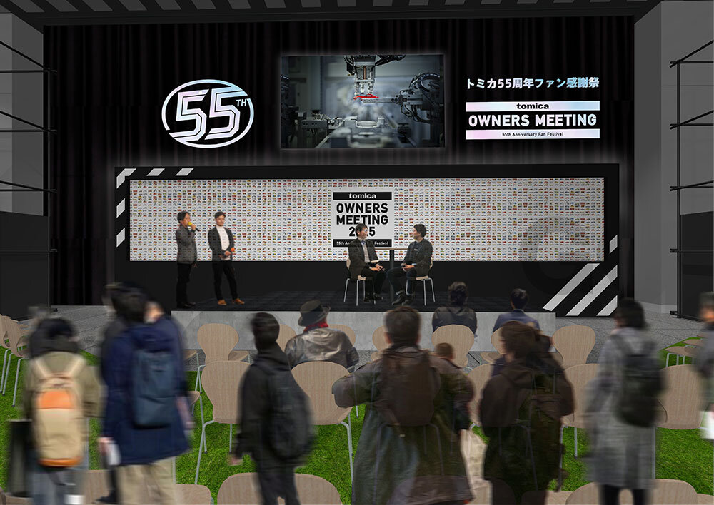 今年55周年を迎えた「トミカ」は、お子様だけでなく、アソビ心を持つ大人ファンの方々のニーズに応える商品ラインアップを拡充しています。2025年2月には、「トミカ」をより楽しめる周辺アイテムとしてプレイセットシリーズ「tomica+」が誕生しました。同シリーズのミニカーコレクションをスタイリッシュに飾るガレージ「tomica GARAGE」は、予約開始から数日で自社ECサイトの予約完売、その後多くの声を受け、再生産に至るなどご好評をいただいています。こうした大人ファンの方々にも満足いただける内容で、「55周年ファン感謝祭 TOMICA OWNERS MEETING」を開催します。ぜひご期待ください。