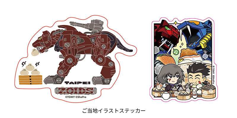 ポップアップイベント「アニメ『ゾイド -ZOIDS-』25th ANNIVERSARY POP UP TOUR」のために描き下ろされたメインビジュアルのアクリルスタンドやキーホルダー、ご当地ゾイドグッズなど、30種類以上のイベント記念グッズを販売します。本イベントを記念して販売されるグッズとして、開催地の台湾に因んだご当地イラストグッズ(アクリルスタンド、ステッカー、缶バッジ 他)も発売予定です。