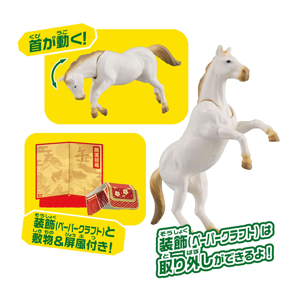 株式会社タカラトミー(代表取締役社長:富山彰夫 /所在地:東京都葛飾区)は、来年の干支をモチーフにした、動かして遊べる手のひらサイズのアクション付き動物フィギュア「干支アニア 午(ウマ)」(希望小売価格:770円/税込)を、2025年11月8日(土)から全国の玩具専門店、百貨店・量販店等の玩具売場、インターネットショップ、一部の書店、タカラトミーの公式ショッピングサイト「タカラトミーモール」(takaratomymall.jp/)等で発売します。また、本商品はアジア8の地域(日本、中国、香港、台湾、シンガポール、フィリピン、タイ、ベトナム)でも発売予定です(日本以外の地域は順次入荷)。